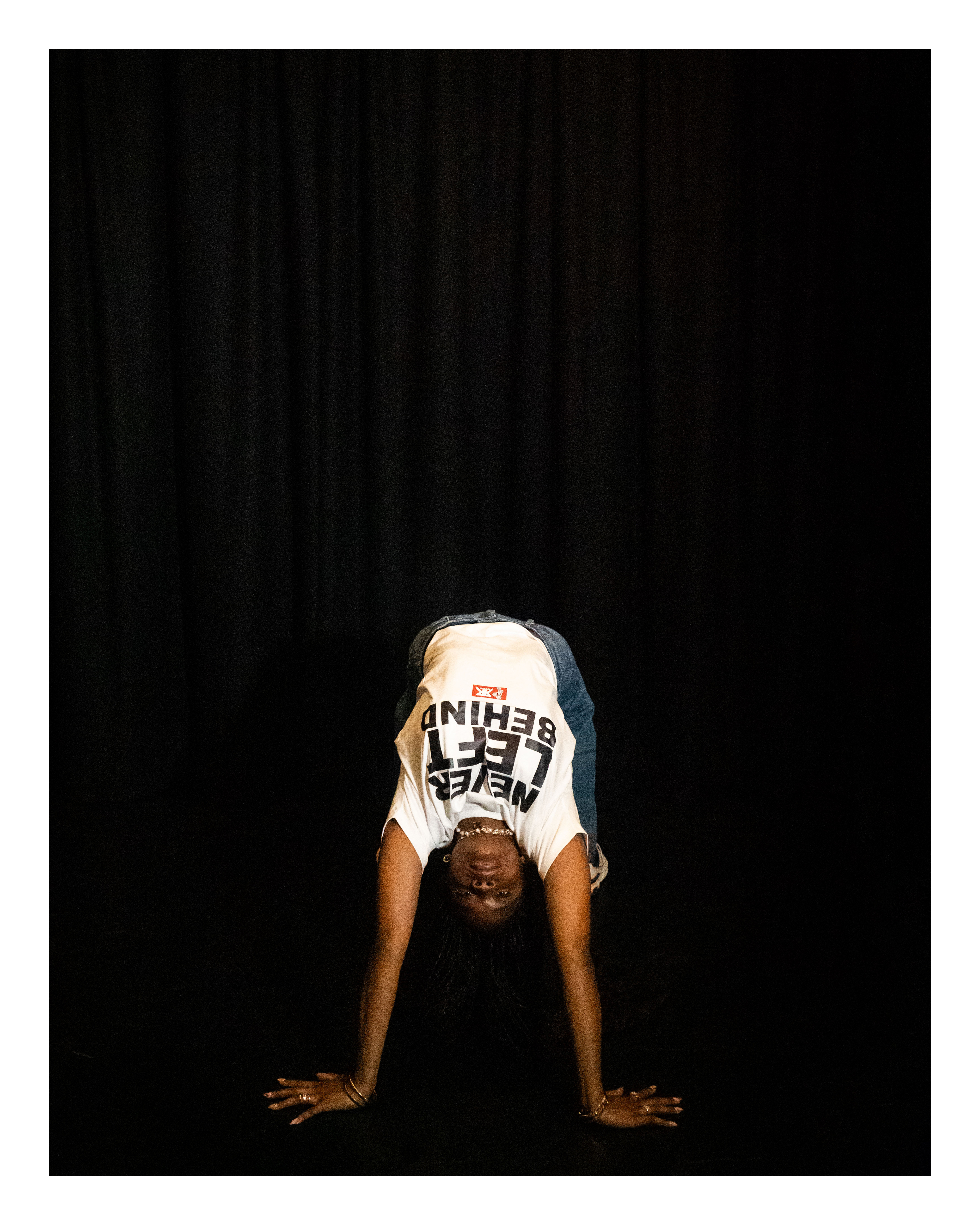 This RAPCHA neverleftbehind editorial is an example of how I've used art direction to tell a story. I directed the visual concept, styling, props and overall mood of the shoot. I wanted the imagery to feel raw, intimate, and centred on movement, using a dark backdrop to draw full attention to the clothing and the neverleftbehind motif. I guided the models through expressive, unconventional poses to reflect the brand’s energy and sense of community, capturing moments that feel both candid and deliberate. The result is a set of images that highlight the bold typography of the garments while communicating the spirit and identity behind RAPCHA.
